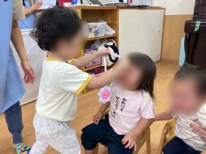 みのり組のお友だちがのぞみ組のお友だちに手繋ごうと誘っていて可愛かったです🥰