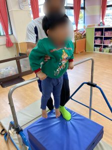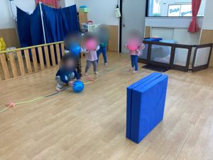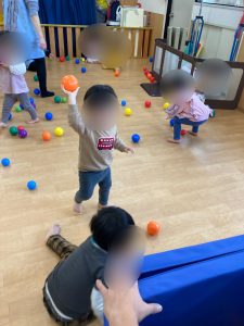ボールで的当て!倒せたら講師の先生が高い高いをしてくれました😆