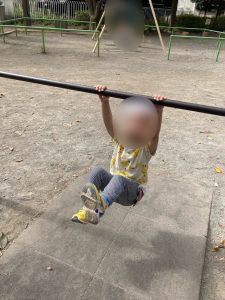 鉄棒にぶら下がったり地面に絵を描いて楽しんでいました✨