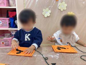 目や口、鼻をのりで貼り かわいいジャックオランタンができました🎃✨