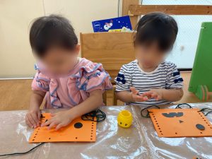 順番を待っている間は音の出るおもちゃで遊びました!