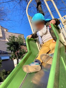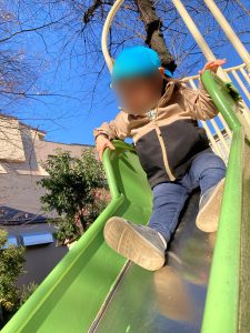 すべり台では、順番を守りながら滑っていました