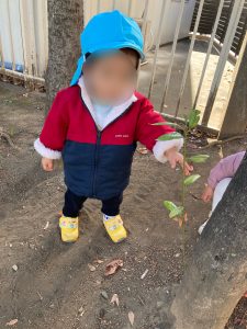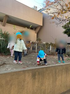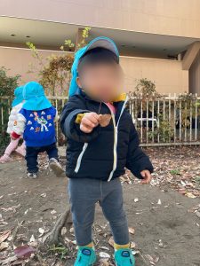 散策路で大きな葉っぱを見つけて手に持っているお友だちもいました