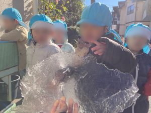 氷の膜が出来ていて興味津々で触っていたね🧊
