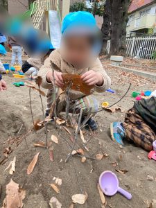 を作ったり、おもちゃで砂を掘ったりして楽しみました😁